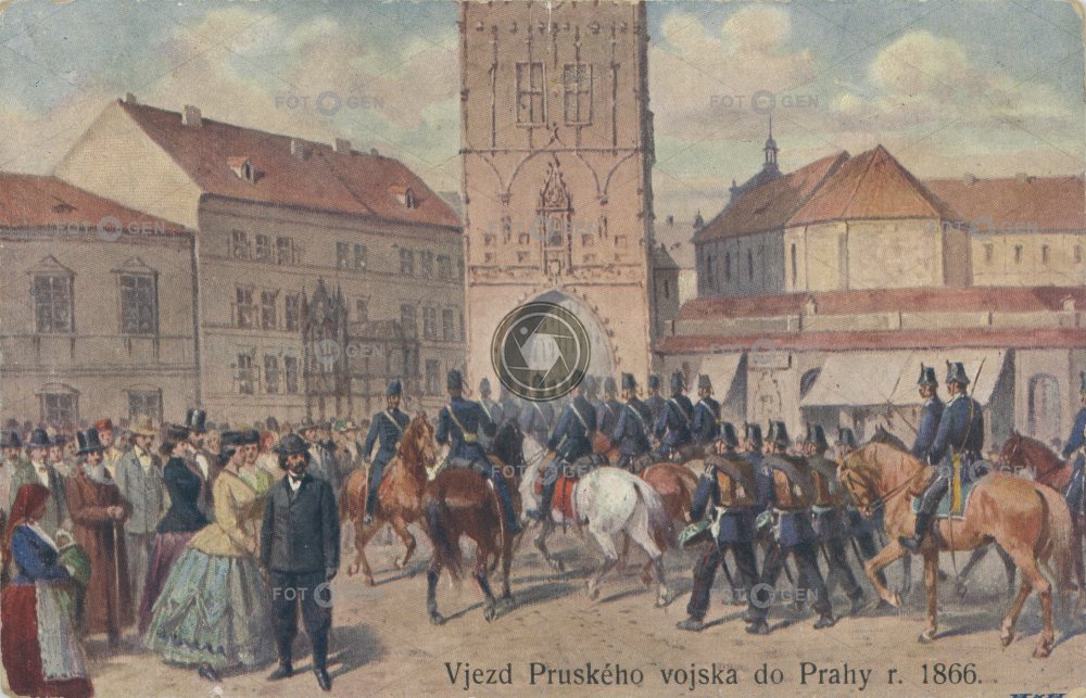 1866 armáda army drawing event horse Königlich Preußische Armee kresba kůň malba místopis náměstí Republiky Old and the New Town boundary painting Powder Tower Prague Praha Prašná brána Pruské vojsko Prusko-rakouská válka prusové Prussian-Austrian War rozhraní Starého a Nového měst rozhraní Starého a Nového měst Soldat soldier topography událost válka vojáci voják vojna vojsko war
