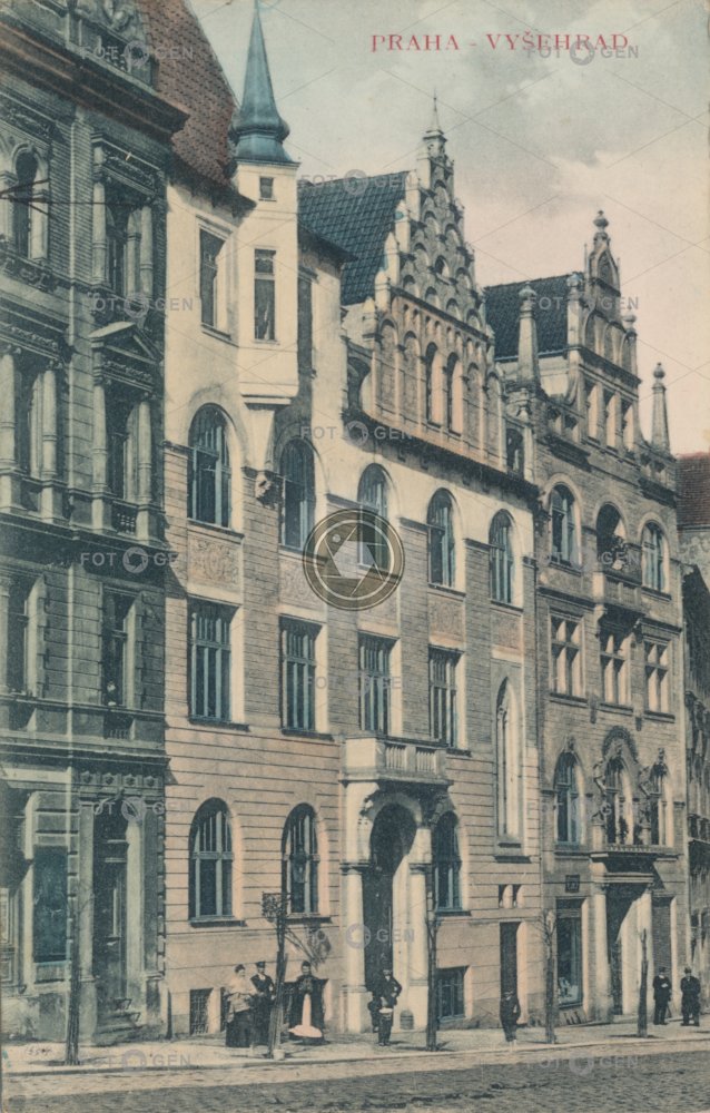 A. Dlabač barevná církve československé colored Husův sbor kolorovaná místopis Neo-Renaissance novorenesance Prague Praha radnice sgraffito sgrafita sgrafito topography U Kroka Vratislavova Vyšehrad Vyšehradské