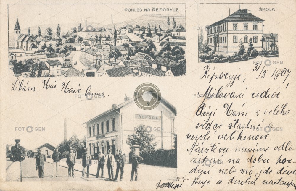 1907 Bahnhof dělníci doprava drah employees lidé místopis nádraží Prag Prague Praha railway station Rübstich Řeporyje school Schule station škola topography transport vlakáč vlaková stanice vlakové nádraží zaměstnanci