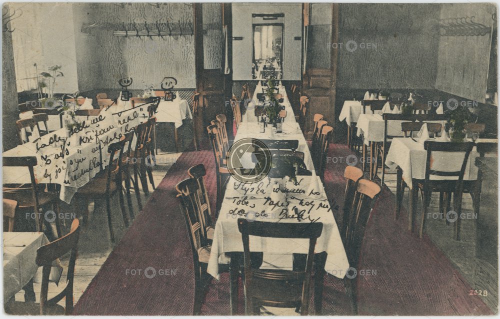 1931 barevná brasserie color colored dining room equipment furniture hospoda chair interiér interior jídelna kolorovaná místopis Na Moráni nábytek New Town Nové Město pivnice Podskalí pohostinství Prague Praha pub restaurace restaurant Špírek topography U Hortíků vybavení židle