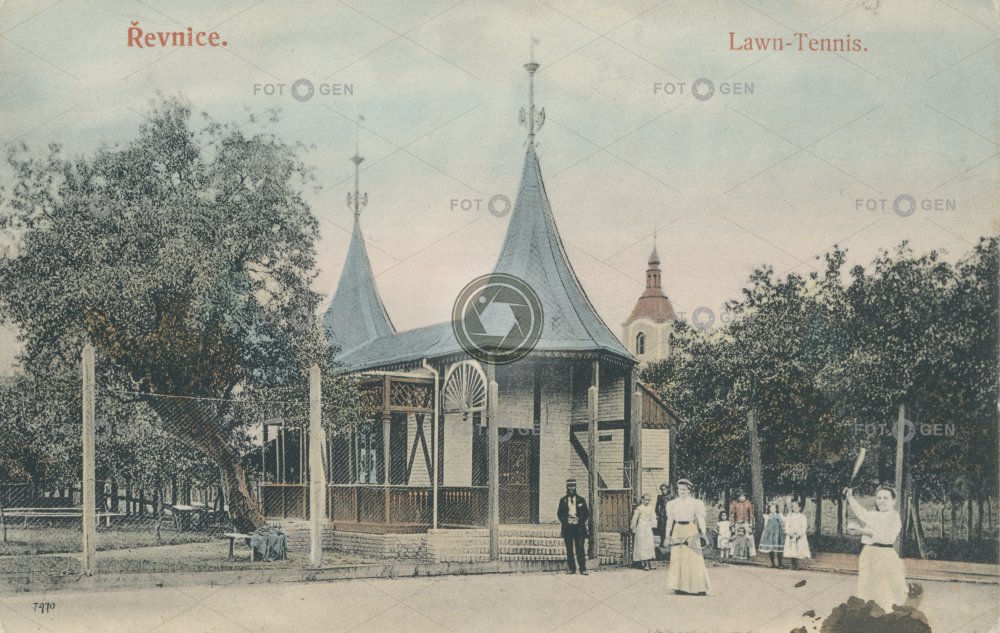 altán altánek barevná color colored hra kolorovaná místopis Prague Praha Řevnice Středočeský kraj tenis tennis court topography