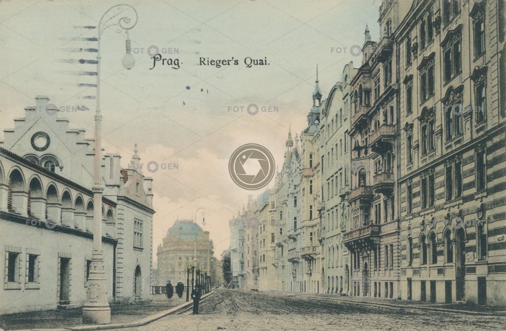 1908 Art Nouveau barevná colored embankment Historicism historismus Hlahol kolorovaná lighting Mánes Masarykovo nábřeží mill místopis mlýn nábřeží Národní divadlo National Theatre Nové Město osvětlení pouliční lampa Prague Praha Riegrovo nábřeží secese St Adalbert´s Quarter street lamp Šítkovské mlýny Šítkovy mlýny the New Town topography Vojtěšská čtvrť