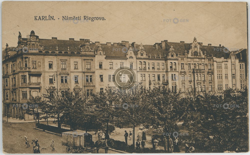 1924 alive horse horse-drawn carriage Karlín koňský povoz kůň Lyčkovo náměstí místopis náměstí Riegrovo Prague Praha Praha 8 Riegrovo topography živá