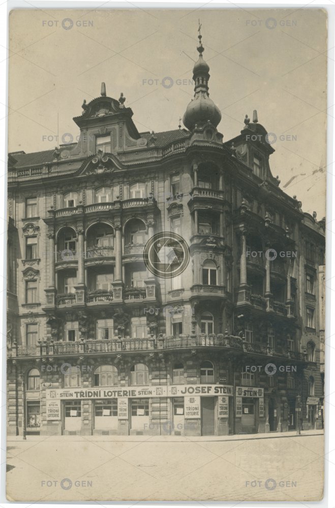 1927 členitý fasáda Jiráskovo loterie lottery místopis náměstí Náplavní Nové Město Prague Praha Riegrovo square St Adalbert´s Quarter the New Town topography Vojtěšská čtvrť Zderaz zdobený