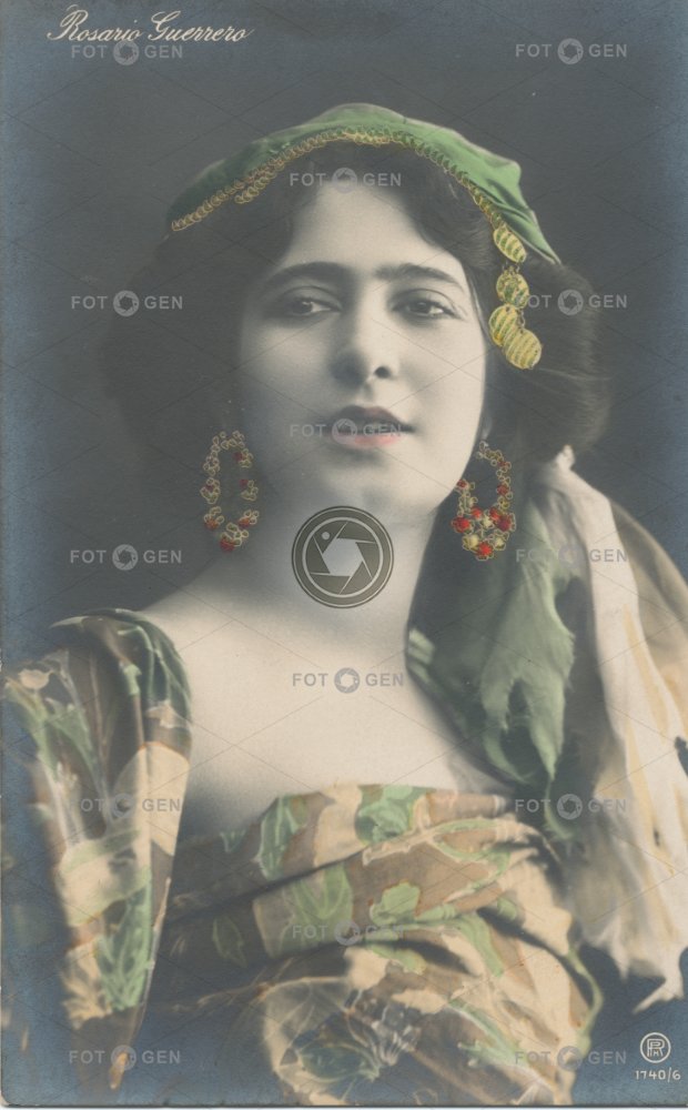 actor barevná celebrity color colored dámské dancer dress Frau frock herec jewelry klenoty kolorovaná La Bella Guerrero osobnosti pěvec portrait portrét Rosario Guerrero singer Spain šaty Španělsko šperky tanečnice vocalist woman zpěvák žena ženy