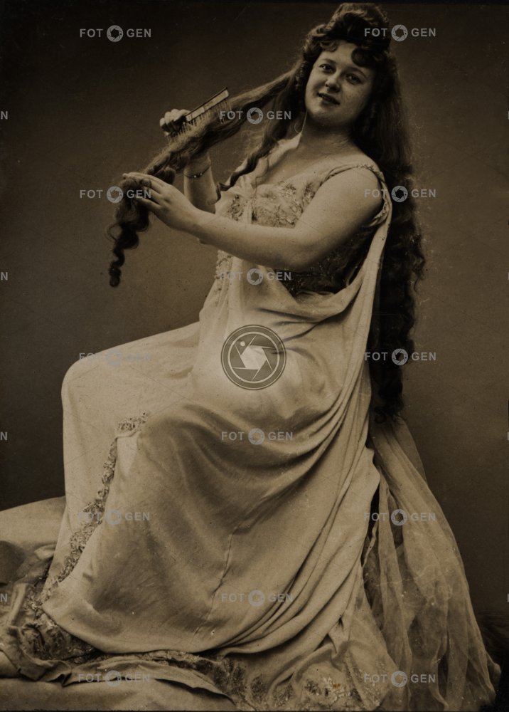 comb combing dlouhé vlasy hřeben leisure long hair morning toilet nightgown noční košile plnoštíhlá portrait portrét ranní toaleta rozčesávání slim volný čas woman žena