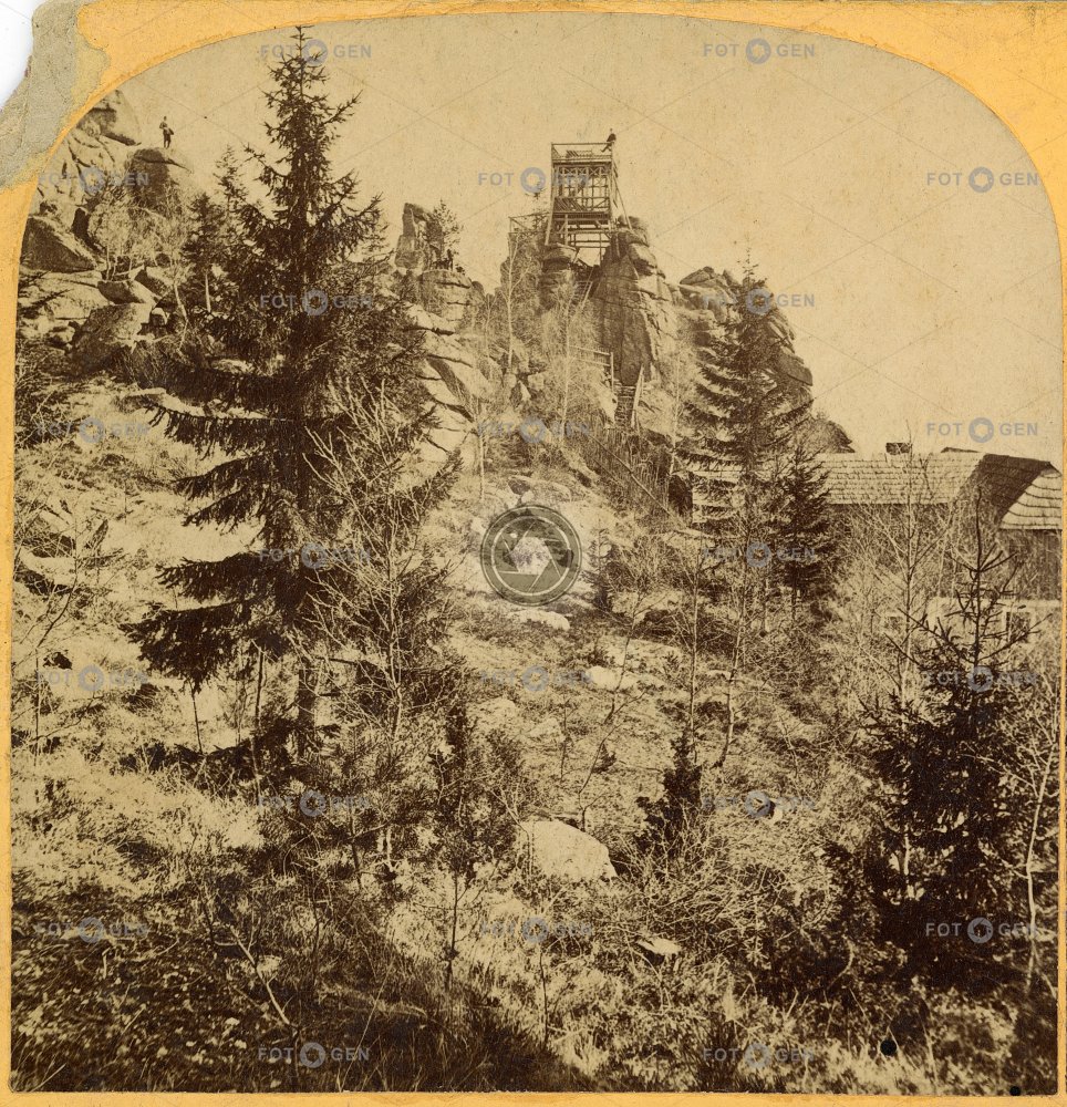 Bad Warmbrunn Biberstein boudy Cieplice Śląskie-Zdrój hiking hill huts lookout tower místopis rock rozhledna skála stromy topography trees turistika vrch