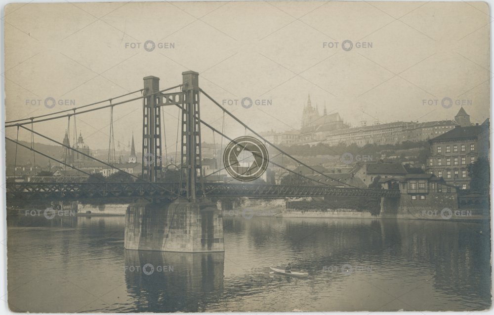 boat bridge Daliborka footbridge Gemini Hradčany Iron footbridge Klárov lávka Lesser Town lodička loďka Malá Strana Mánesův most místopis mýtní domek mýto neexistující neexistující objekt neexistující stavba non-existent nonexistent building Prague Prague Castle Praha Pražský hrad Rejdiště river Rudolf's footbridge Rudolfova lávka řeka řetězová lávka řetězový most Suspension Bridge topography visutý most Vltava Železná Železná lávka