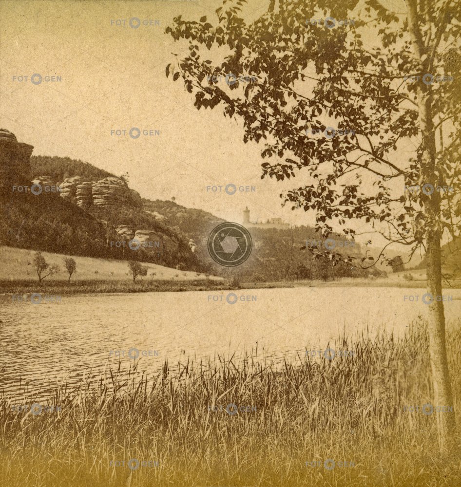 Rybník v Kokořínském dole s pohledem na hrad Kokořín, polovina stereofotografie