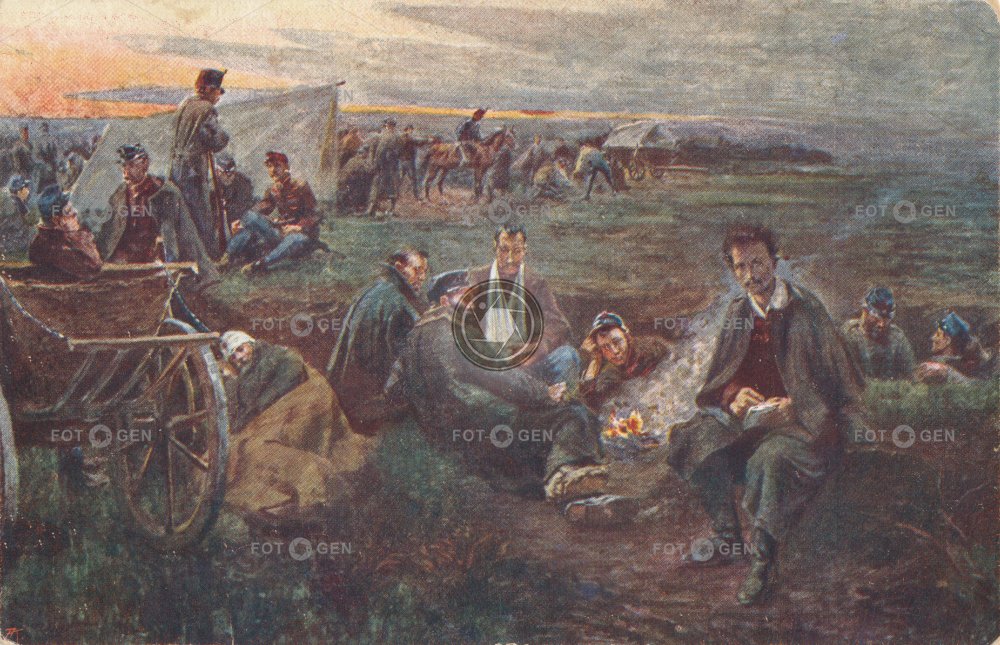 army art barevná báseň básník color colored Hungary katonavonat kolorovaná kresba Maďarsko Magyarország malba militärisch military Petőfi a táborban Petőfi Sándor poem poet Révész rhyme Tábor umění Ungarn vojenské vojenský vojsko war camp wojskowy
