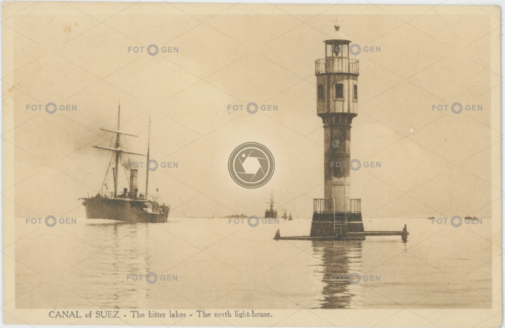 beacon boats doprava Egypt Great Bitter Lake lighthouse loď loďky maják místopis north parník sea-mark severní ship steamboat Suez Canal Suezský průplav topography transport Velké Hořké jezero