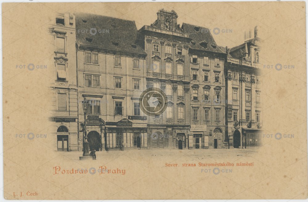 1899 baroko baroque dům Goltzovský house lighting místopis obchody Old Town Old Town Square osvětlení pouliční lampa Prague Praha shop square Staré Město Staromák Staroměstské náměstí street lamp topography U stříbrné hvězdy U tří mouřenínů