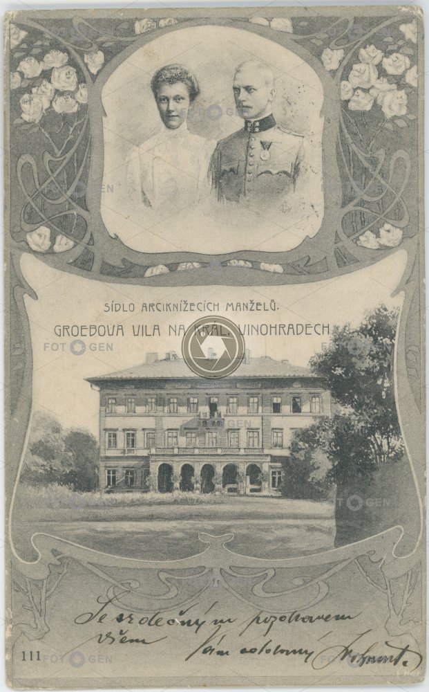 1902 Alžběta Antonín Viktor Barvitius arcikníže archbishop Barvitius celebrity Grébova Gröbova Groebova vila Habsburg Habsburkové Havlíčkovy sady Hermann Grab Hugo Ernst Josef Blecha Královské Vinohrady místopis Neo-Renaissance neorenasance osobnosti Ota z Windisch-Graetze Prague Praha Praha 8 princ Prince princess princezna Royal Vineyard Royal Vineyards topography villa Vinohrady