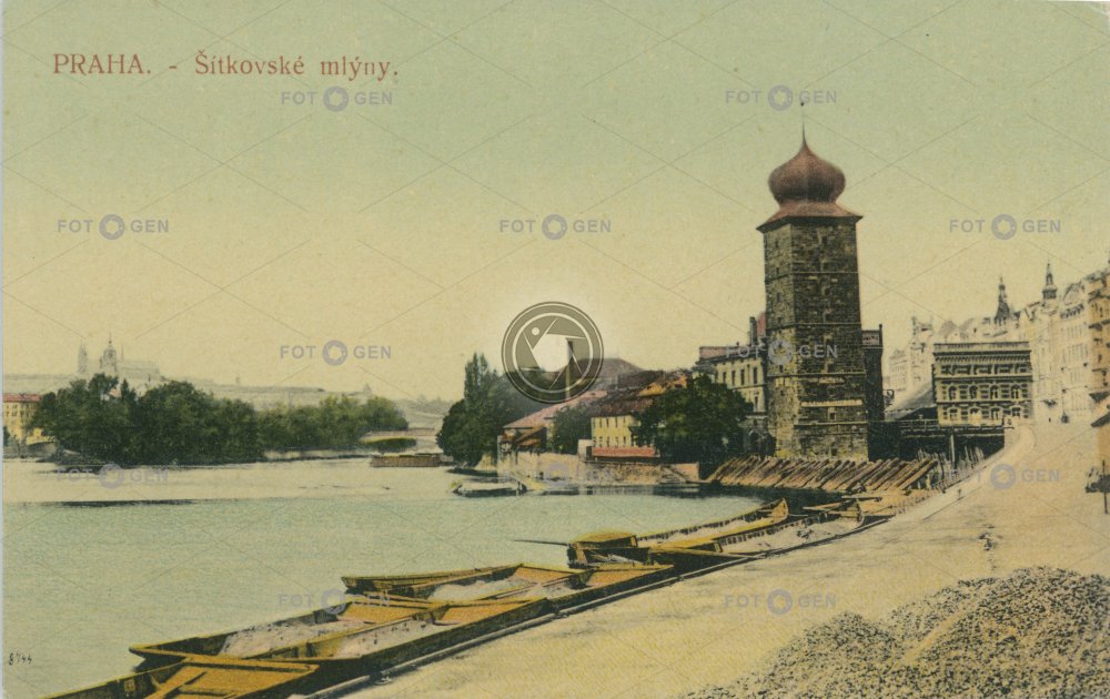 barevná colored embankment Hořejší novoměstská kolorovaná lodě Mánes místopis nábřeží náplavka New Town Nové Město Písek Prague Praha river řeka ship St Adalbert´s Quarter Šítkovská náplavka Šítkovské Šítkovské mlýny topography Vltava vodárenská věž Vojtěšská Vojtěšská čtvrť water tower