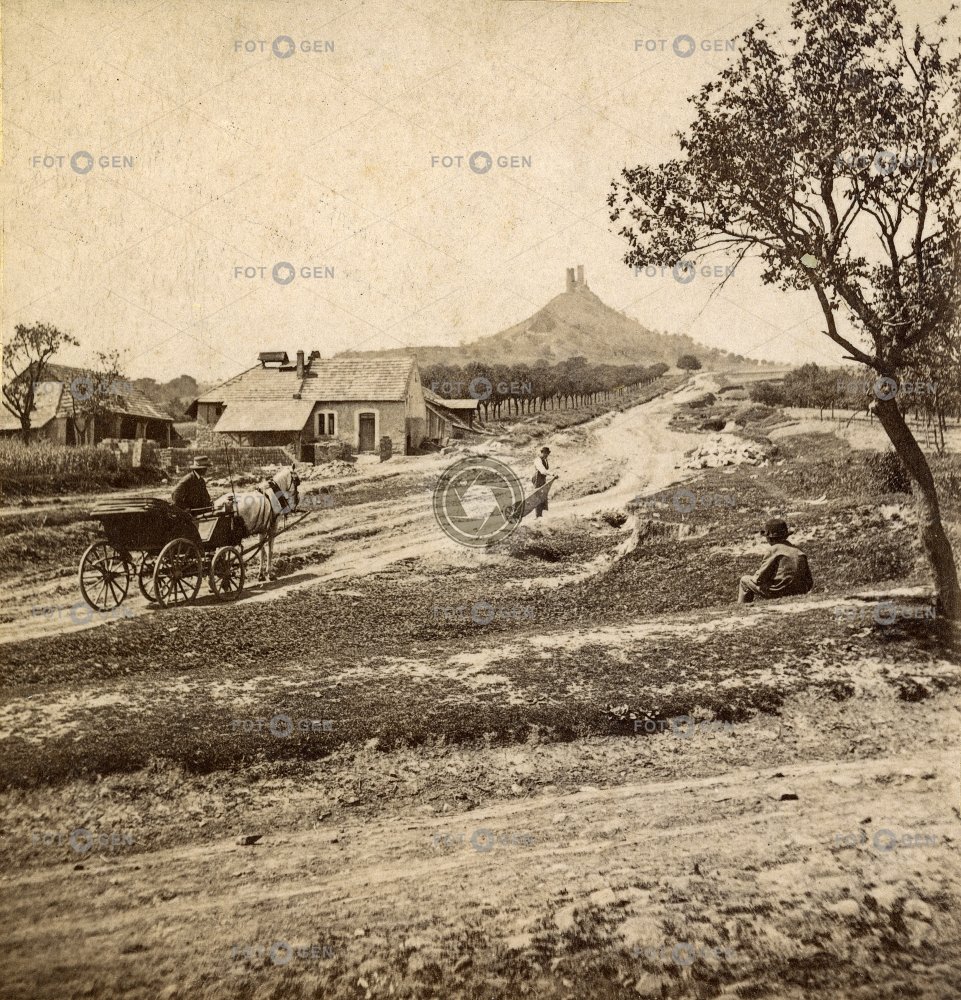 bryčka carriage castle cesta doprava Hasenburg Hazmburk horse hrad chariot kůň místopis povoz road ruin Slatina topography transport vesnice village zřícenina