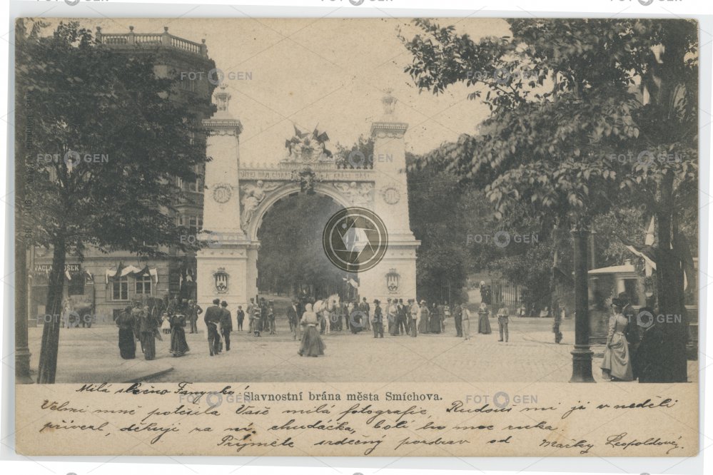alive brána event gate místopis neexistující neexistující objekt neexistující stavba non-existent nonexistent building park Prag Prague Praha prvorepublikové slavnostní Smíchov topography událost živá