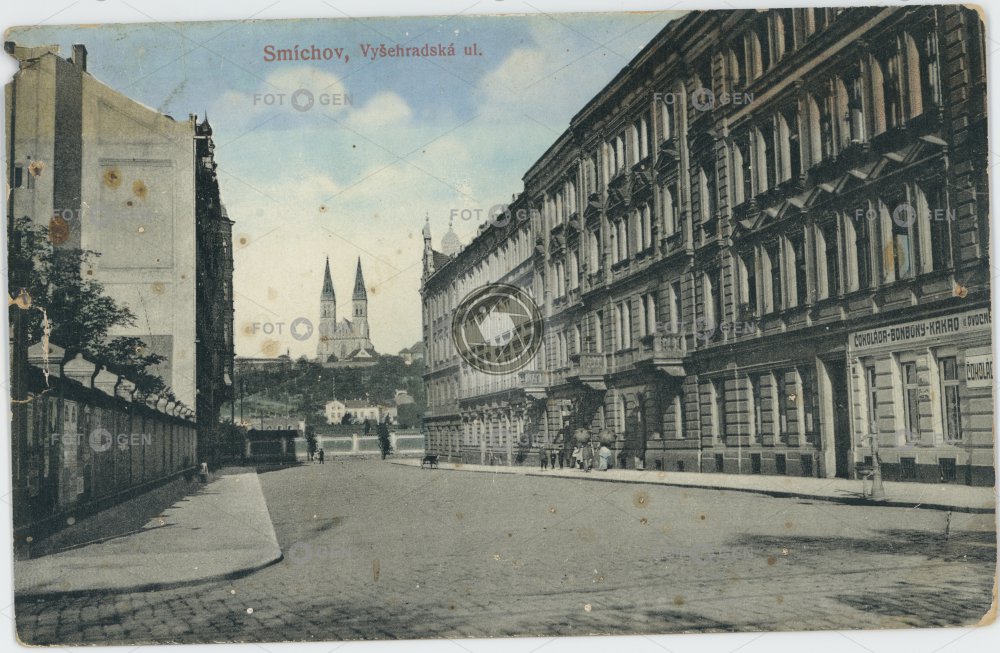 barevná color colored kolorovaná místopis Prag Prague Praha Smíchov topography U železničního mostu Vyšehrad Vyšehradská