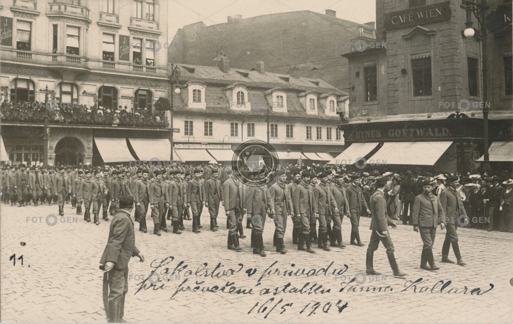1900-1909 1904 army cafe event funeral Golden Cross Hynek Gottwald kavárna Kollár Koňský trh místopis Na Příkopě New Town Nové Město pohřeb Prague Praha Příkopy smutečení průvod sokol square topography událost uniform uniforma Václavák Václavské náměstí Wenceslas Square Zlatý kříž