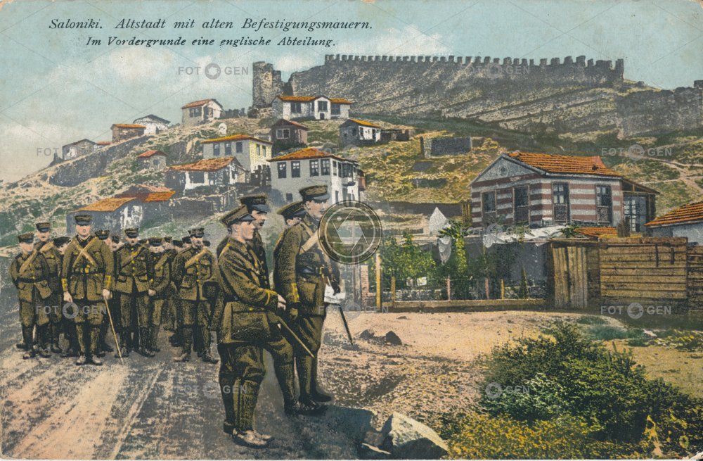 alive angličané armáda army barevná colored Englishman Greece hradby katonavonat kolorovaná Militär militärisch military Řecko Soldat soldier Tesalonika Thessaloniki vojáci voják vojenské vojenský vojsko walls wojsko wojskowy živá