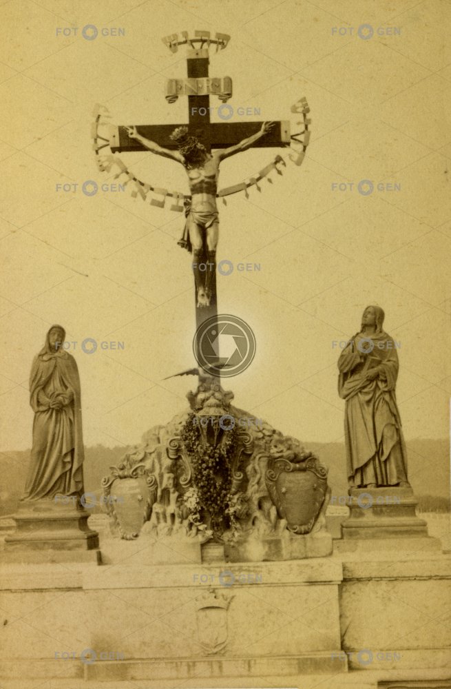 Calvary Emanuel Max Charles Bridge Jan John Kalvárie Karlův most Marie místopis Prague Praha sculpture socha sousoší St. Cross statue sv. Kříž topography Virgin Mary