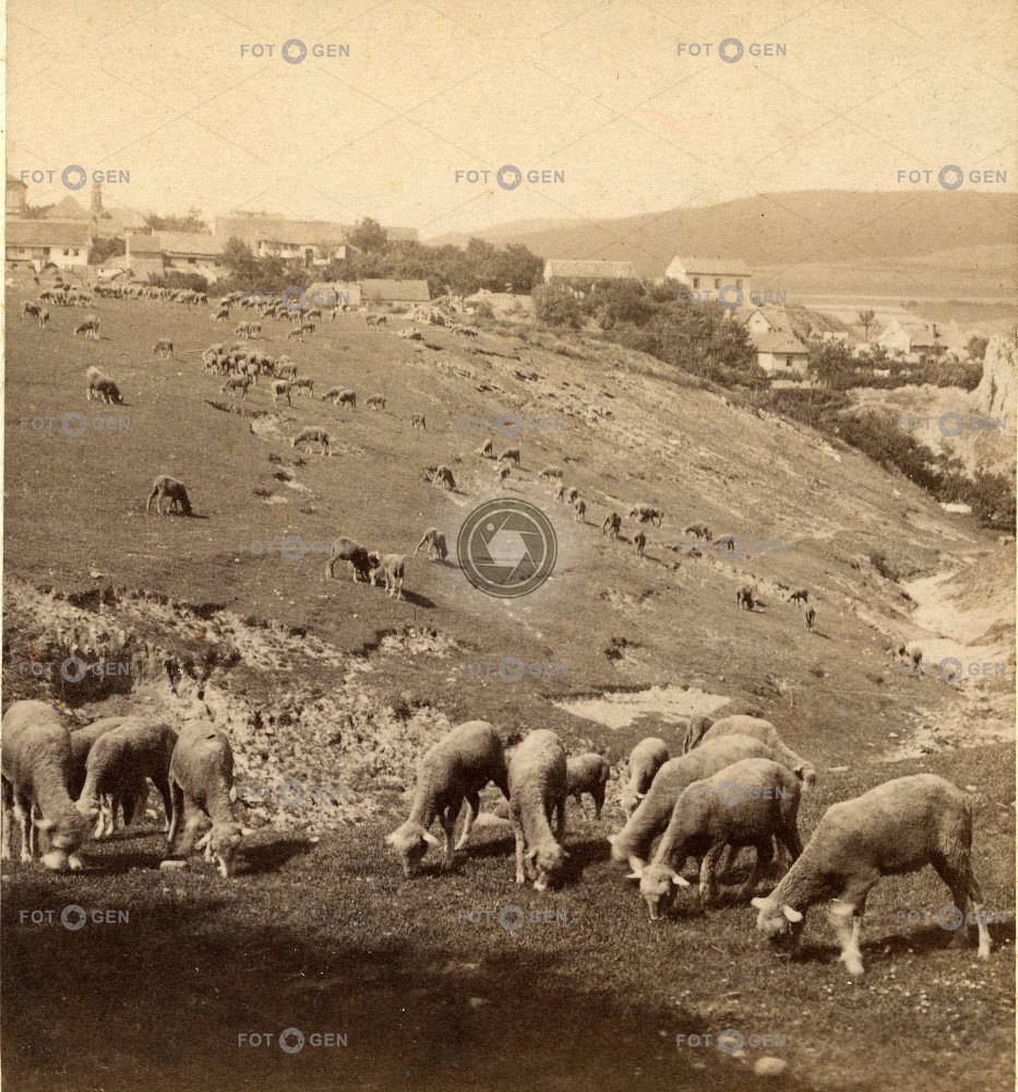 Stádo ovcí, dobový popisek: UTetína, polovina stereofotografie