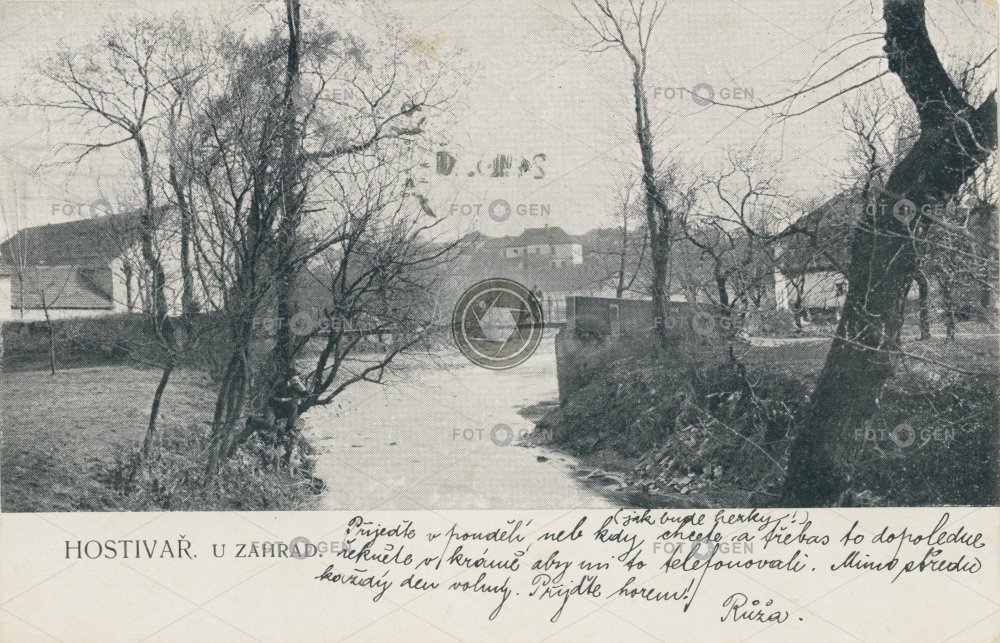 Stará Hostivař, potok Botič, Praha 1909 Autor: neznámý