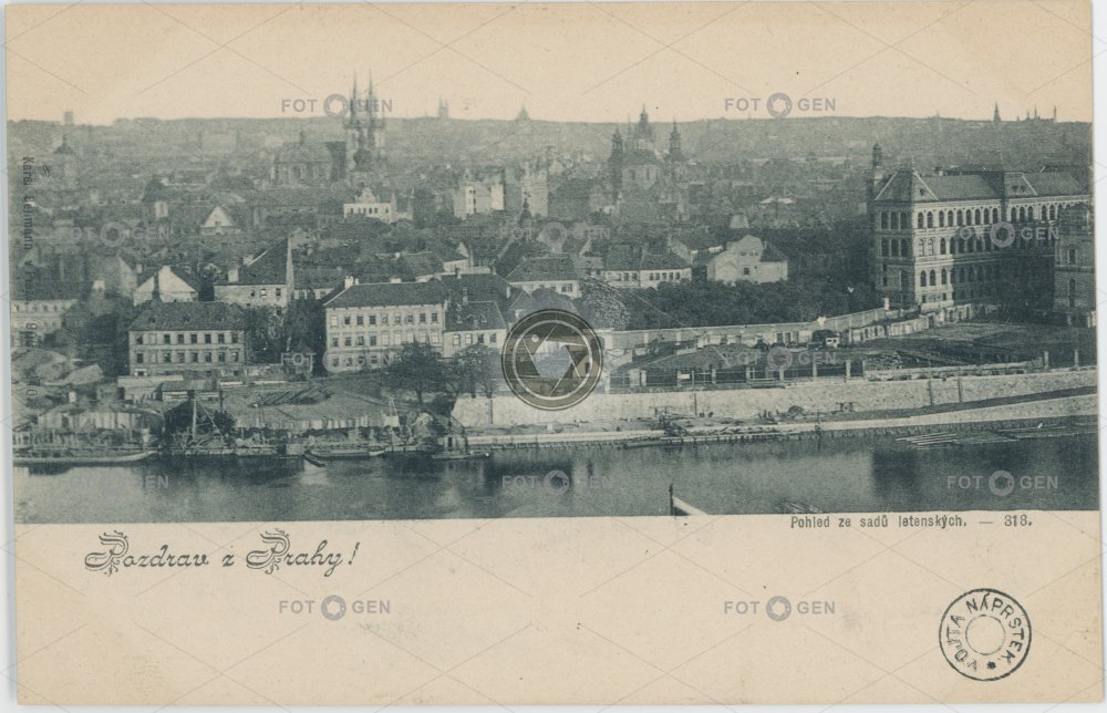 celkový pohled Dvořákovo nábřeží embankment Karel Bellmann místopis Old Town panorama Prague Praha river řeka Staré Město topography Vltava