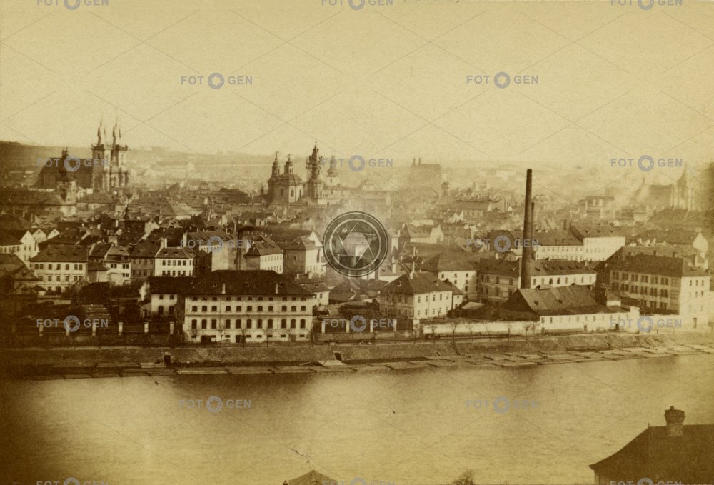 celkový pohled coast general view chimney komín místopis Old Town pobřeží Prague Praha Staré Město topography Vltava