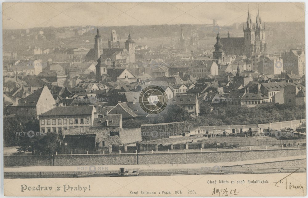 1902 celkový pohled chrám church Karel Bellmann kostel místopis Old Town panorama Prague Praha Staré Město temple topography tower Týnský chrám věže