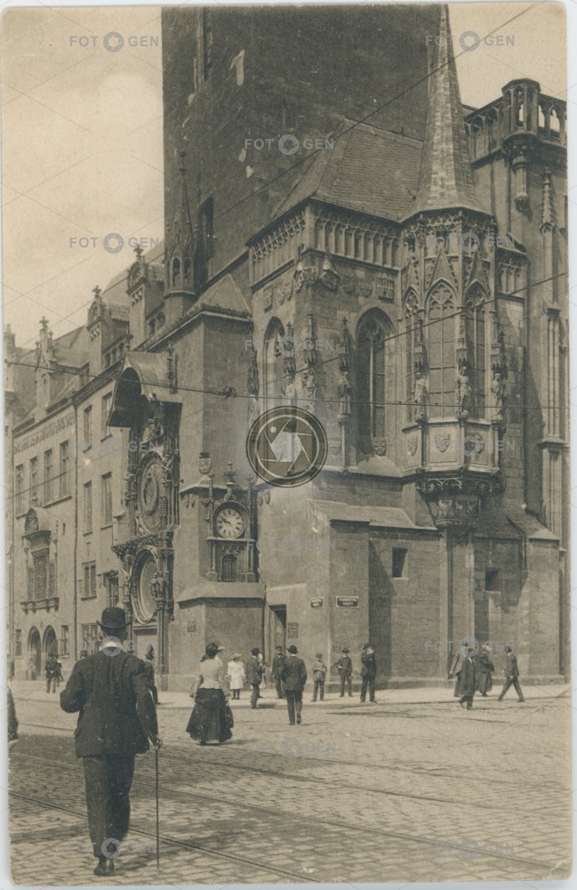 1905 alive Astronomical Clock clock gotika hodiny Karel Bellmann Old Town Old Town Square orloj pouliční ruch Prague Praha radnice Staré Město Staroměstké náměstí street traffic town hall živá