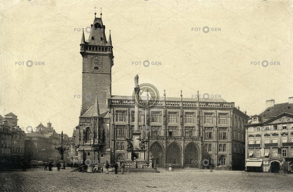 apartment building arkýř dlažba Krennův dům Marian Column. tower Mariánský sloup. věž místopis nájemní dům náměstí Old Town Square pavement Prague Praha radnice square Staroměstské náměstí topography town hall