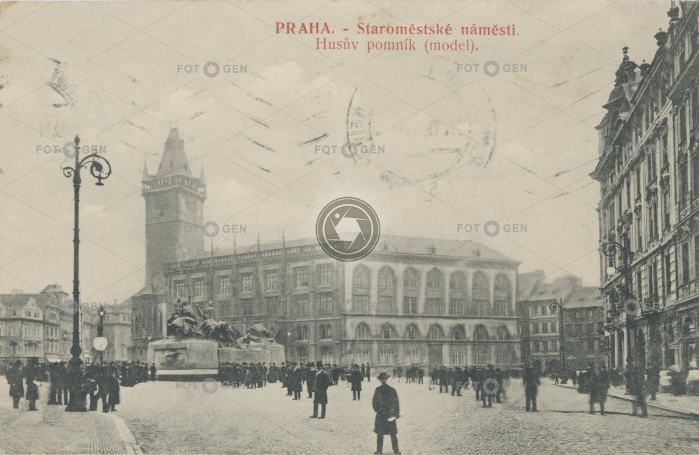 1911 alive Husův Husův pomník Jan Hus memorial místopis model monument Old Town Old Town Hall Old Town Square pomník pouliční lampa Prague Praha radnice Staré Město Staroměstská radnice Staroměstské náměstí street lamp topography town hall živá