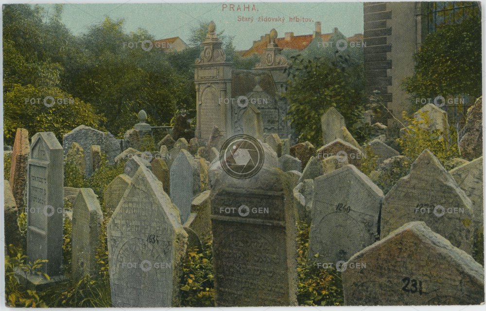 1908 barevná cemetery colored hřbitov Jewish cemetery Josefov Judaism Judaismus kolorovaná místopis náhrobek náhrobky Old Jewish Cemetery Old Town Prague Praha Staré Město starý židovský hřbitov The Jewish Town tombstone topography židovské ghetto židovské město židovský hřbitov