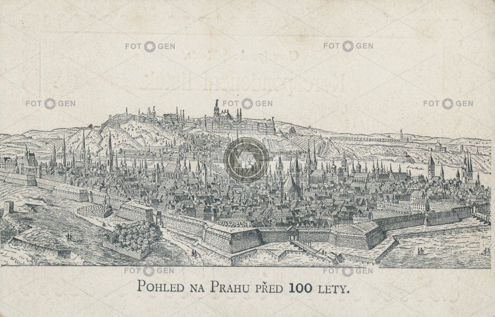 1800 bastion celkový drawing hradby kresba malba místopis opevnění painting panorama Prague Praha topography walls