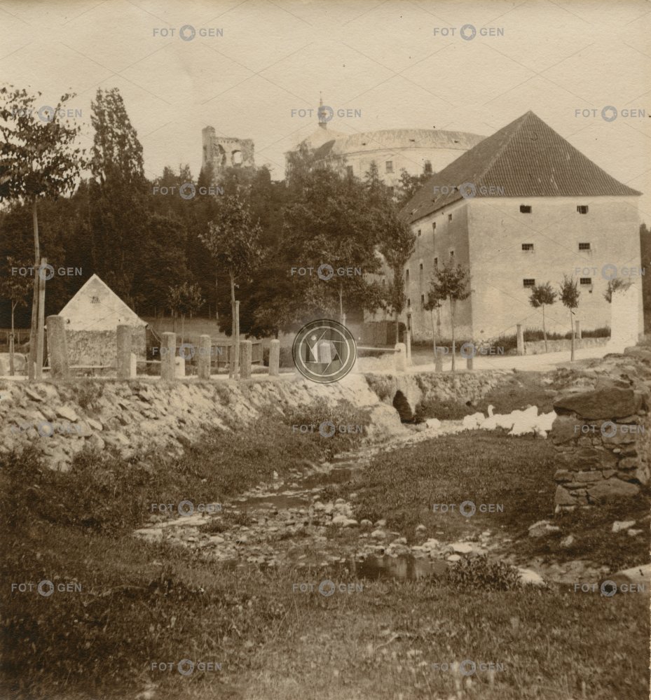 bollard castle geese granary husy místopis patník potok road ruin silnice stream Střela sýpka topography zámek zřícenina