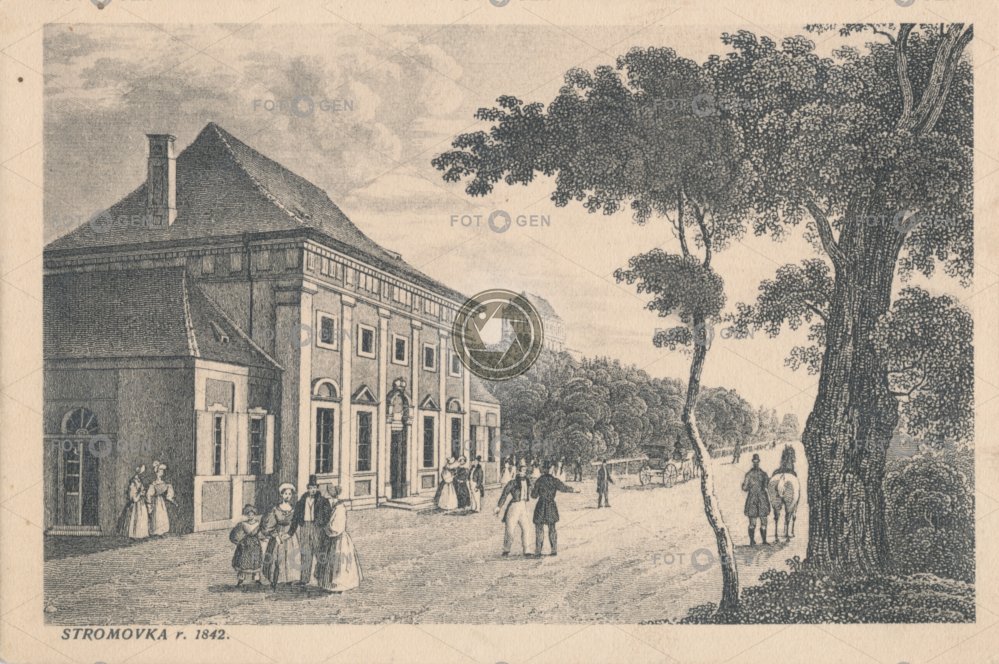 art dámy klobouky Královská obora kresba letohrádek lidé malba místopis park poeple Prague Praha Stromovka Šlechtova restaurace topography umění