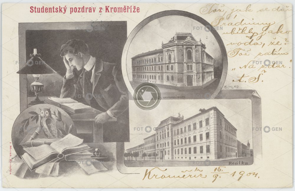 1904 collage gymnásium gymnázium Haná Athens Hanácké Athény koláž Kremsier Kroměříž místopis school student škola topography Zlínský Zlínský kraj