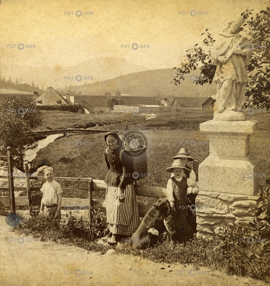 Arber art Böhmerwald cesta costume děti dog ethnology etnologie fotoscéna children Jan Nepomucký Javor krajina kroj Landscape Maple Nepomuk nůše path pes photo scene scissors socha statue Šumava umění woman Železná Ruda žena