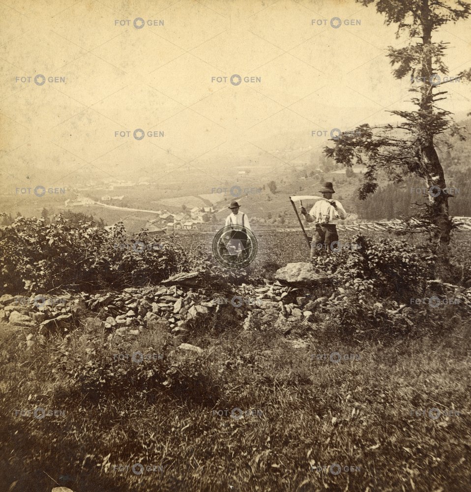 Böhmerwald borovice Debrník ethnology etnologie foto scéna chisel kosa kosení krajina Landscape louka meadow mowing photo scene pine práce scythe sekáč Šumava wall work zídka