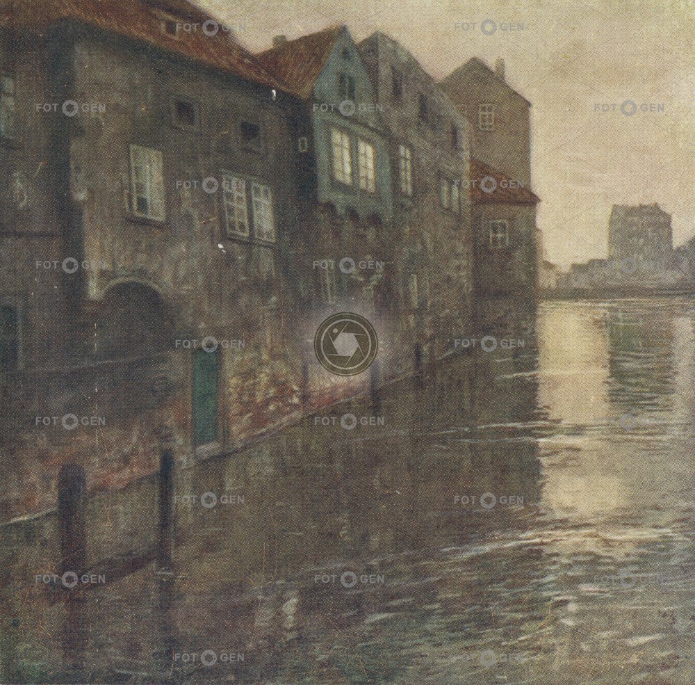 art barevná Benátky color colored Čertovka drawing kolorovaná kresba malba místopis painting Prague Prague Venice Praha pražské river řeka T. F. Šimon topography umění