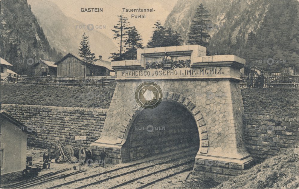 1912 Austria Ausztria doprava dráha Gastein Gebirge Góry hegyek hory Land místopis mountains Österreich portál Rakousko Salcbursko Salzburg Tauernbahn topography transport trať tunel tunnel železnice železniční