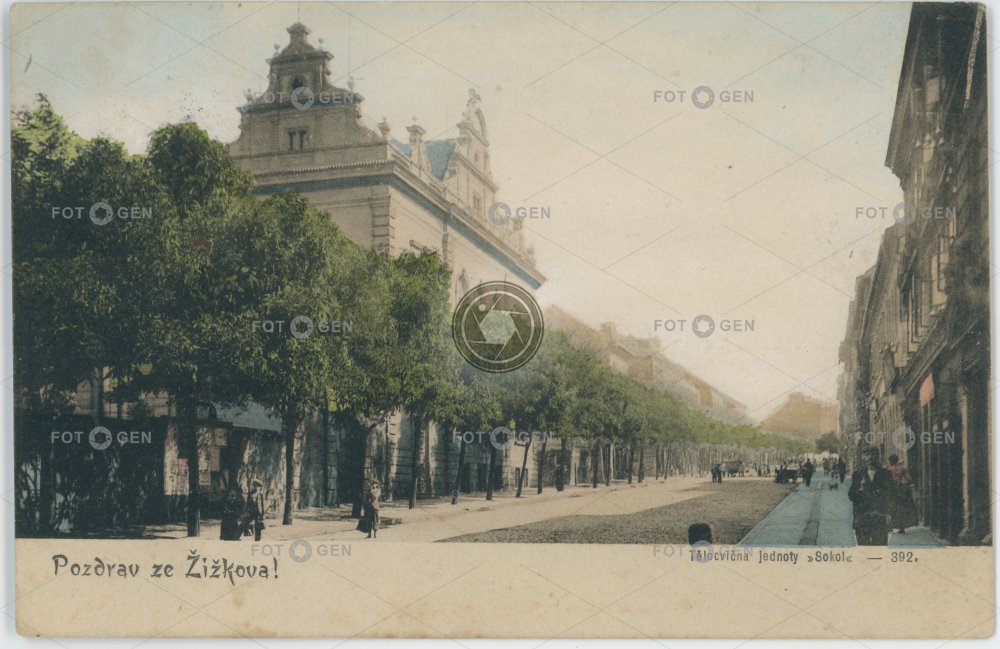 Tělocvična jednoty Sokol na Poděbradově třídě 1902, dnes ulice Koněvova.
