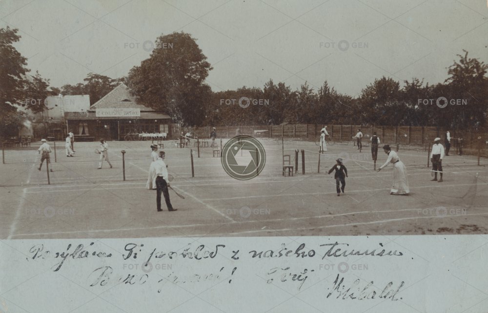 1901 dobové oblečení hra leisure lidé Menschen místopis people period clothes period dressed Prague Praha sport sportovec tenis tenisový kurt tennis court topography Vinohrady volný čas