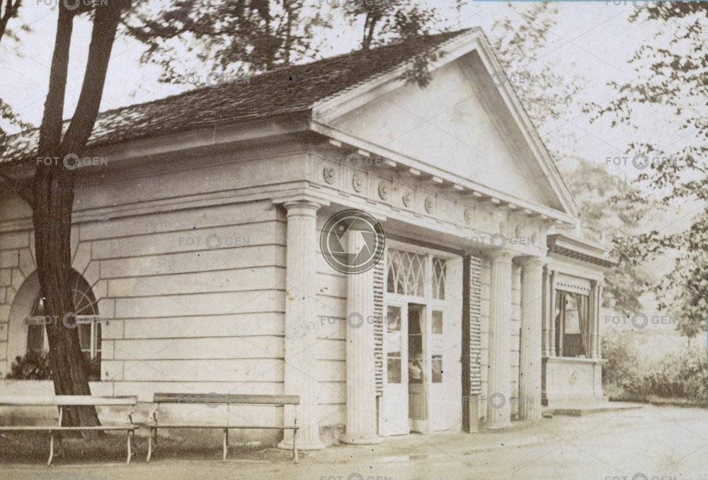 bench Classicism colonnade cukrárna Haueisen confectionery Haueisenova cukrárna klasicismus kolonáda lavička lázeňský park lázně místopis spa spa park Teplice Teplitz topography
