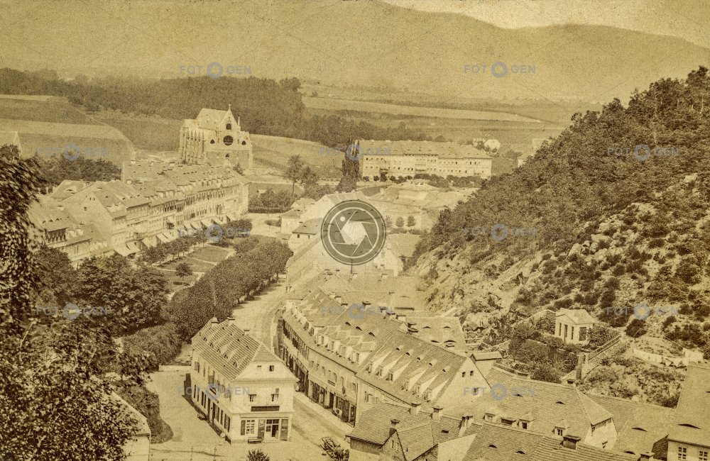 celkový pohled general view Jewish Hill kostel sv. Bartoloměje Královská třída lázně místopis Royal Avenue Schönau spa Šanov Teplice Teplitz the church of St. Bartholomew topography Židovský vrch