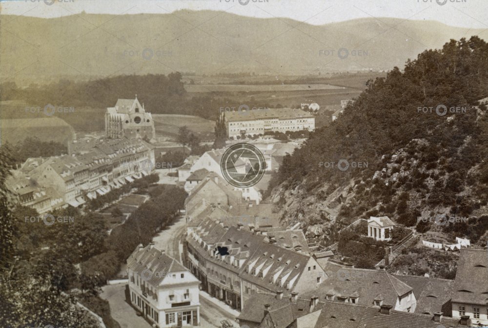bird's eye view hill Jewish Hill kopec kostel Lázeňská street Lázeňská ulice lázně místopis ptačí perspektiva Schönau spa Šanov Teplice Teplitz topography Židovský vrch