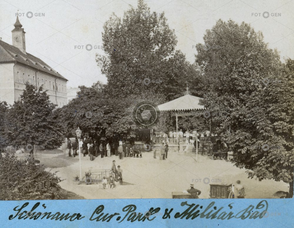 hudba hudební pavilon lamp lampa lázeňský park lázně listeners Military spa místopis music music pavilion park pavilion Pavilon posluchači Schönau spa spa park Šanov Teplice Teplitz topography Vojenské lázně