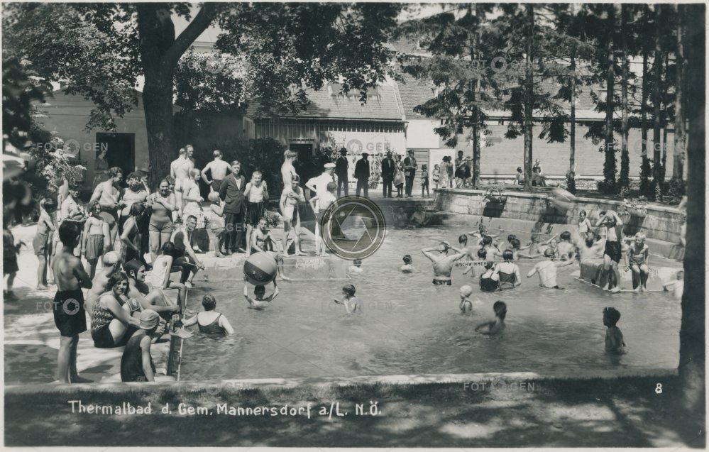 1939 am Leithagebirge Austria Ausztria bazén bazény hry koupající koupaliště lázně leisure lidé Mannersdorf míč místopis Österreich plavci pláž Rakousko swimming swimming pool termální termální lázně Thermal Baths Thermalbad topography volný čas