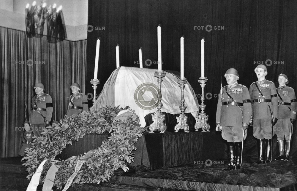 1937 armáda celebrity Československa Československý čestná stráž event generál J. Syrový katafalk L. Krejčí osobnosti Osvoboditel pohřeb prezident první rakev smrt smuteční T.G. Masaryk tatíček Tomáš Garrigue Masaryk událost úmrtí věnec