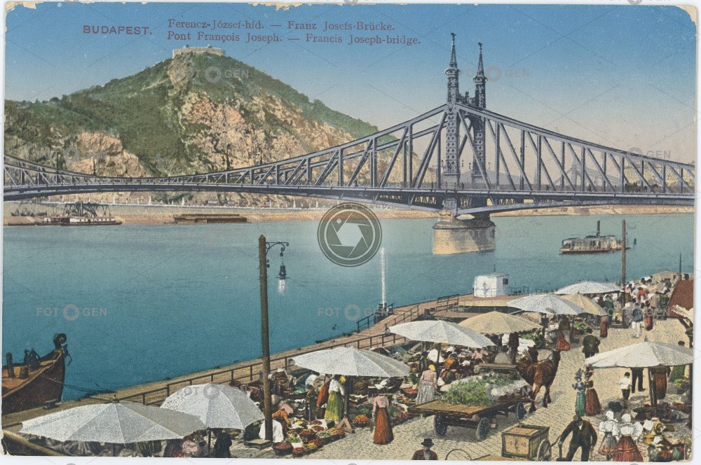 Budapest Budapešť císař Franz Josef I. doprava etnologie krajina místopis most Františka I. práce prodejní trh předměty trh tržnice volný čas zvířata